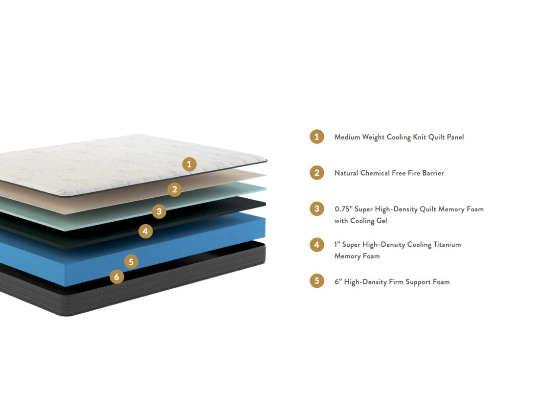 The KOVA Contour™ features high-density titanium-infused memory foam for next-level support and pressure relief. The smooth top design offers body-hugging comfort while still providing the durability of a high-resilience support base.